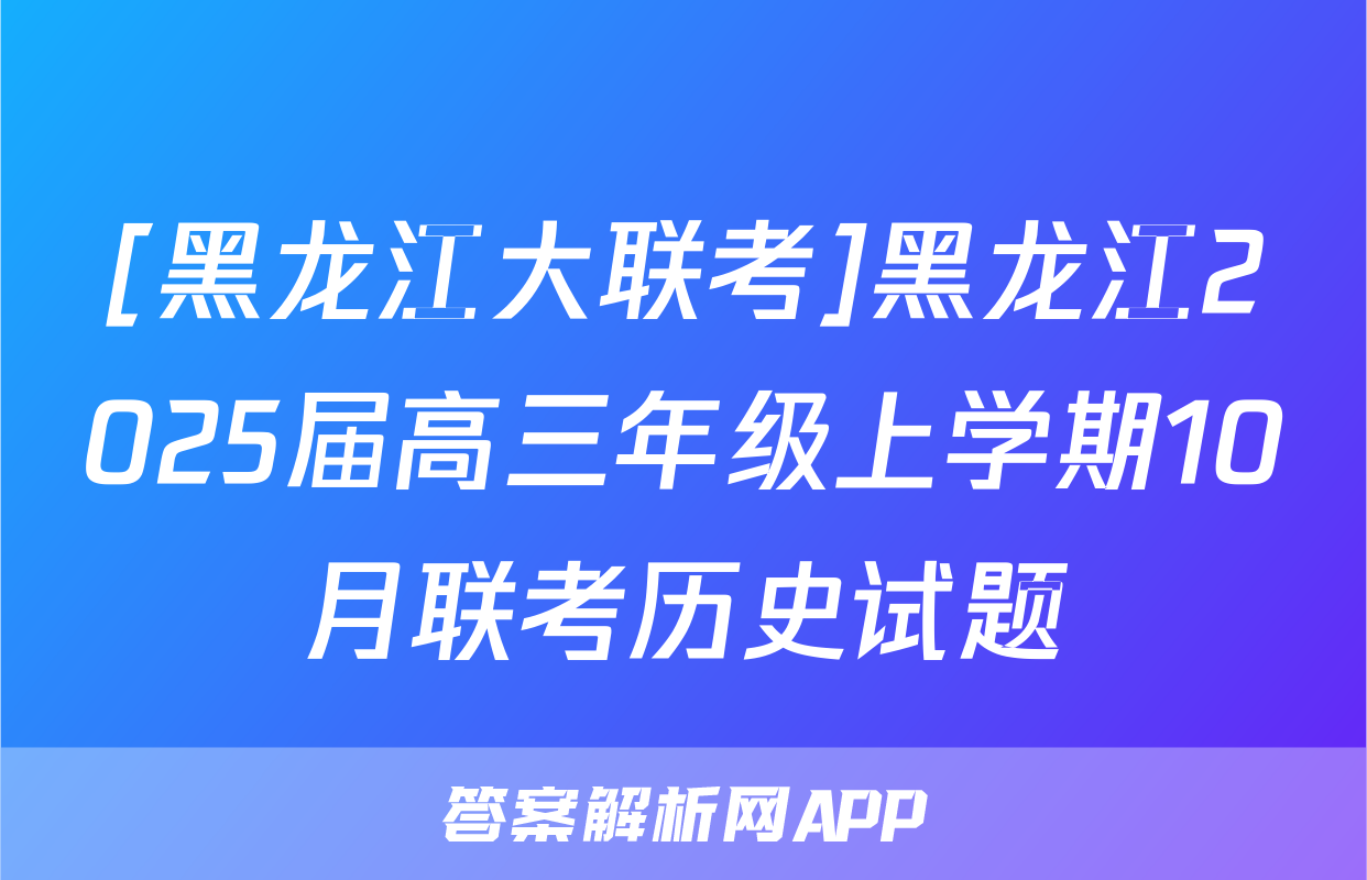 [黑龙江大联考]黑龙江2025届高三年级上学期10月联考历史试题正在持续更新,目前2026卷行天下答案网为大家整理了相关试题及答案,供大家查缺补漏,高效提升成绩。
