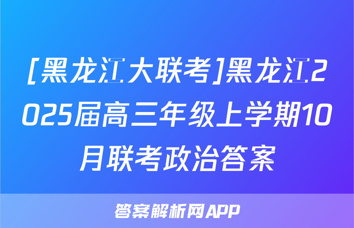 [黑龙江大联考]黑龙江2025届高三年级上学期10月联考政治答案正在持续更新,目前2026卷行天下答案网为大家整理了相关试题及答案,供大家查缺补漏,高效提升成绩。