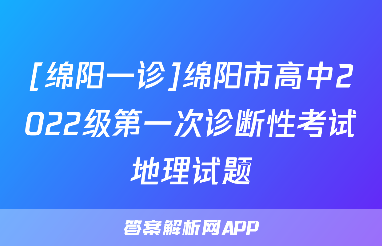[绵阳一诊]绵阳市高中2022级第一次诊断性考试地理试题正在持续更新,目前2026卷行天下答案网为大家整理了相关试题及答案,供大家查缺补漏,高效提升成绩。