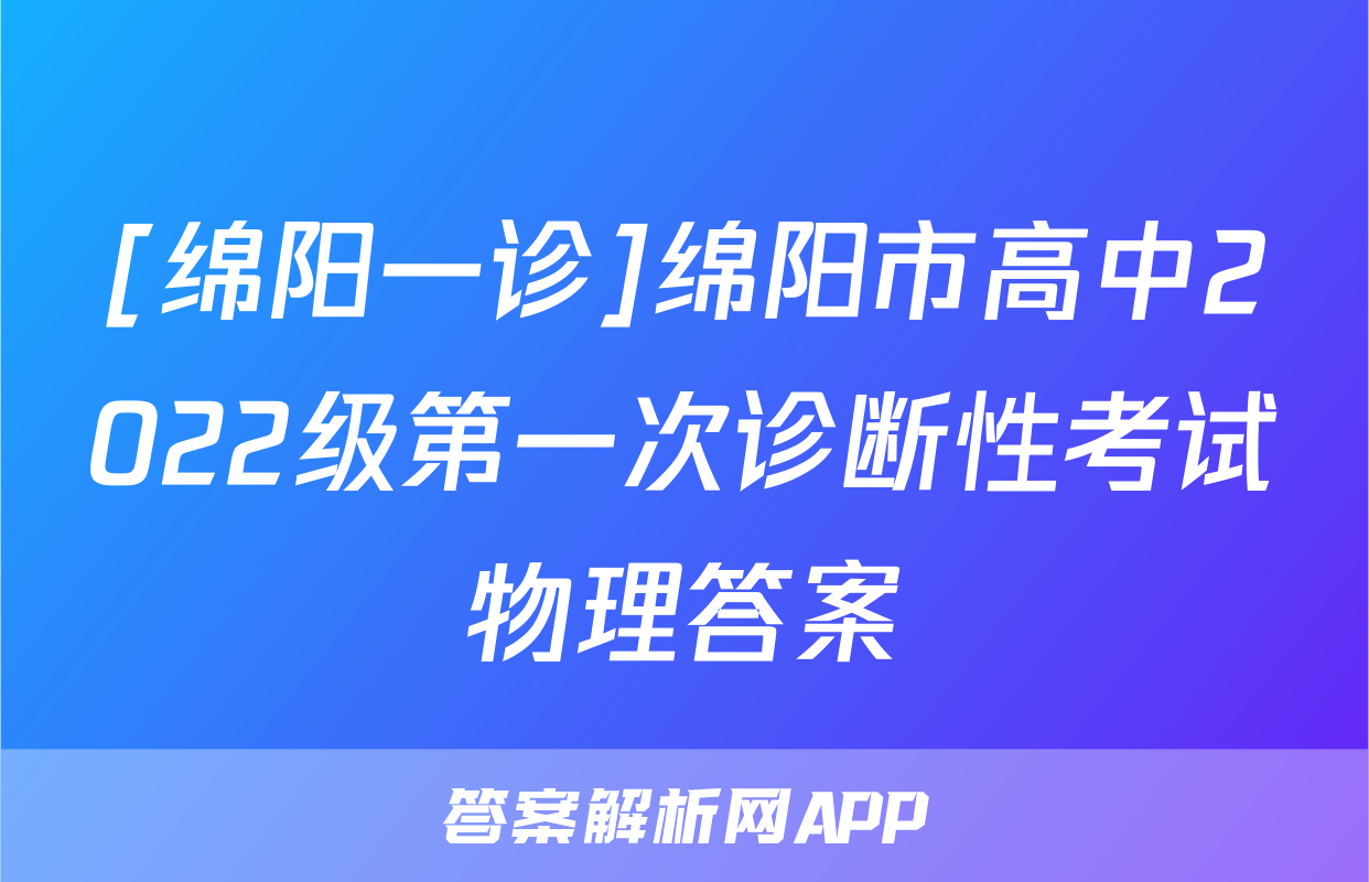 [绵阳一诊]绵阳市高中2022级第一次诊断性考试物理答案正在持续更新,目前2026卷行天下答案网为大家整理了相关试题及答案,供大家查缺补漏,高效提升成绩。