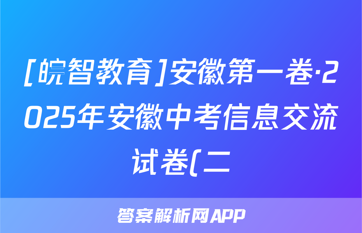 [皖智教育]安徽第一卷·2025年安徽中考信息交流试卷(二)2化学试题正在持续更新,目前2026卷行天下答案网为大家整理了相关试题及答案,供大家查缺补漏,高效提升成绩。