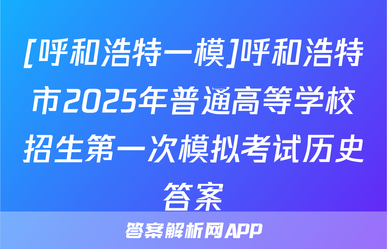 [呼和浩特一模]呼和浩特市2025年普通高等学校招生第一次模拟考试历史答案正在持续更新,目前2026卷行天下答案网为大家整理了相关试题及答案,供大家查缺补漏,高效提升成绩。