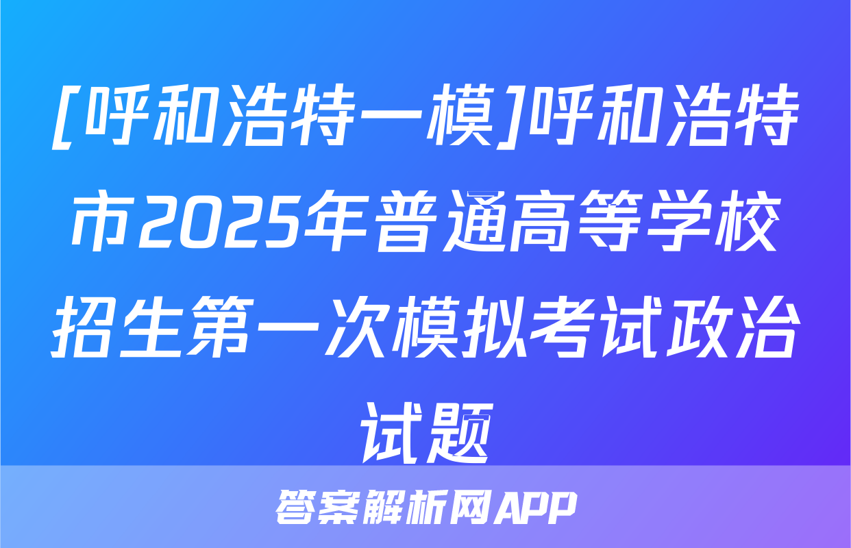 [呼和浩特一模]呼和浩特市2025年普通高等学校招生第一次模拟考试政治试题正在持续更新,目前2026卷行天下答案网为大家整理了相关试题及答案,供大家查缺补漏,高效提升成绩。