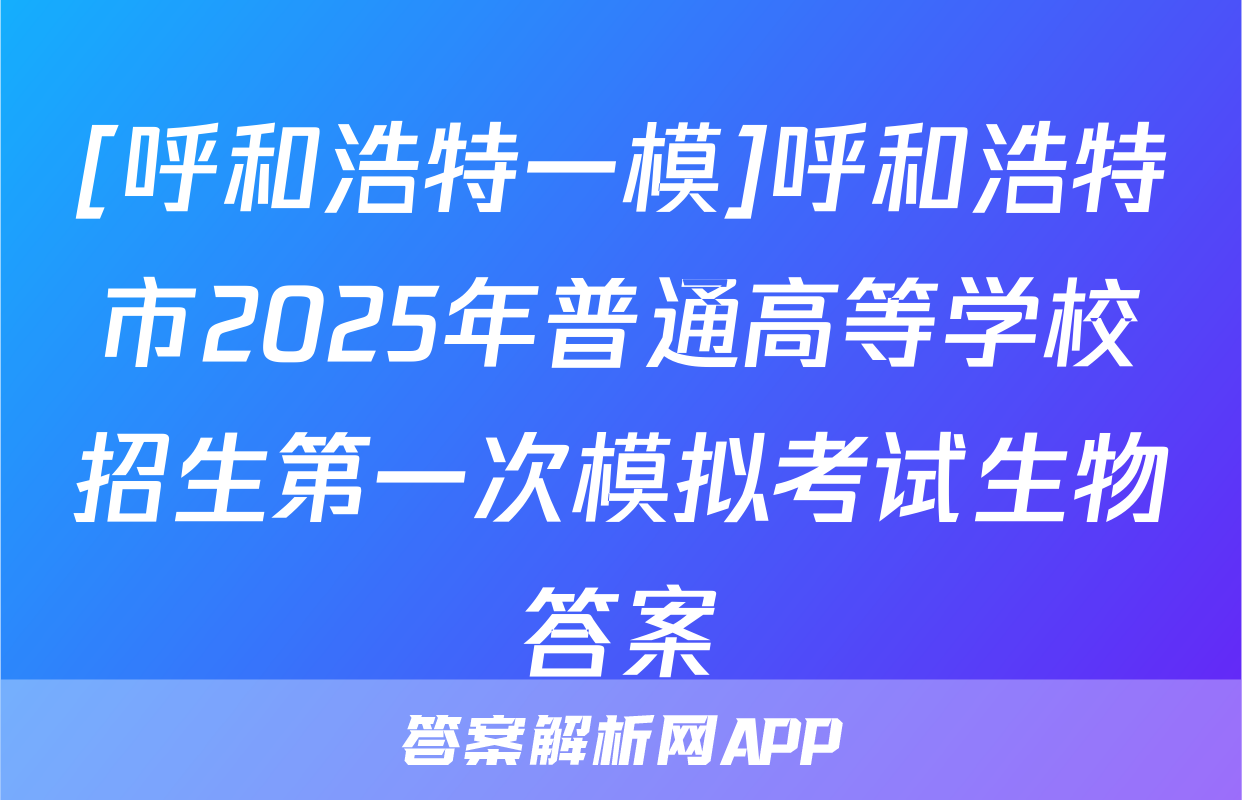 [呼和浩特一模]呼和浩特市2025年普通高等学校招生第一次模拟考试生物答案正在持续更新,目前2026卷行天下答案网为大家整理了相关试题及答案,供大家查缺补漏,高效提升成绩。