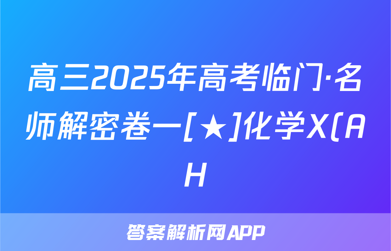 高三2025年高考临门·名师解密卷一[★]化学X(AH)试题正在持续更新,目前2026卷行天下答案网为大家整理了相关试题及答案,供大家查缺补漏,高效提升成绩。