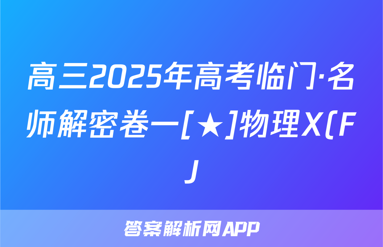 高三2025年高考临门·名师解密卷一[★]物理X(FJ)试题正在持续更新,目前2026卷行天下答案网为大家整理了相关试题及答案,供大家查缺补漏,高效提升成绩。