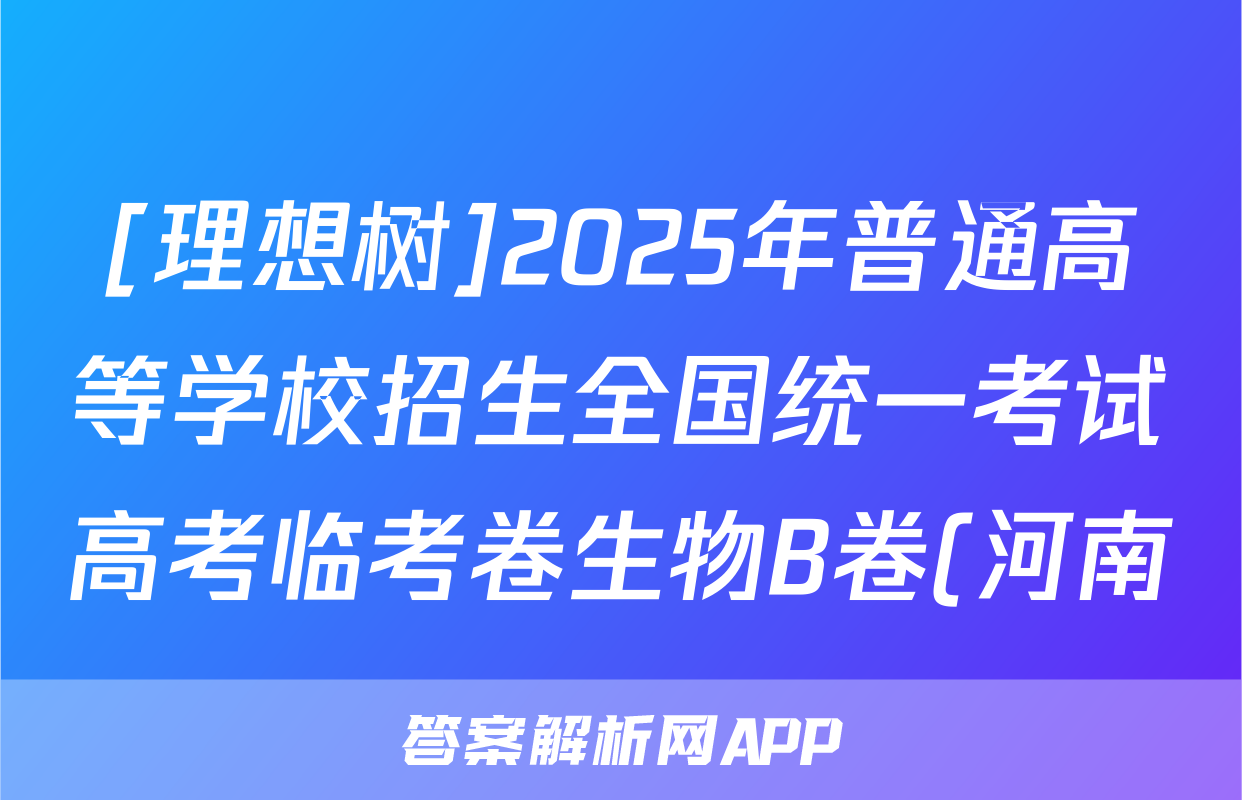 [理想树]2025年普通高等学校招生全国统一考试高考临考卷生物B卷(河南)答案正在持续更新,目前2026卷行天下答案网为大家整理了相关试题及答案,供大家查缺补漏,高效提升成绩。