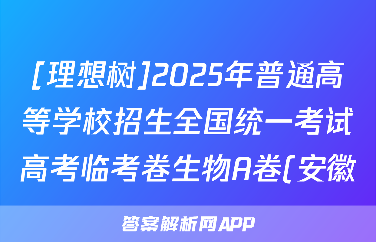 [理想树]2025年普通高等学校招生全国统一考试高考临考卷生物A卷(安徽)试题正在持续更新,目前2026卷行天下答案网为大家整理了相关试题及答案,供大家查缺补漏,高效提升成绩。