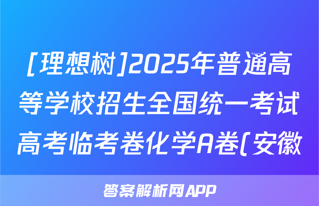 [理想树]2025年普通高等学校招生全国统一考试高考临考卷化学A卷(安徽)试题正在持续更新,目前2026卷行天下答案网为大家整理了相关试题及答案,供大家查缺补漏,高效提升成绩。