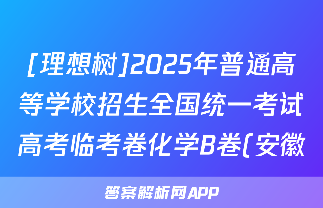 [理想树]2025年普通高等学校招生全国统一考试高考临考卷化学B卷(安徽)试题正在持续更新,目前2026卷行天下答案网为大家整理了相关试题及答案,供大家查缺补漏,高效提升成绩。