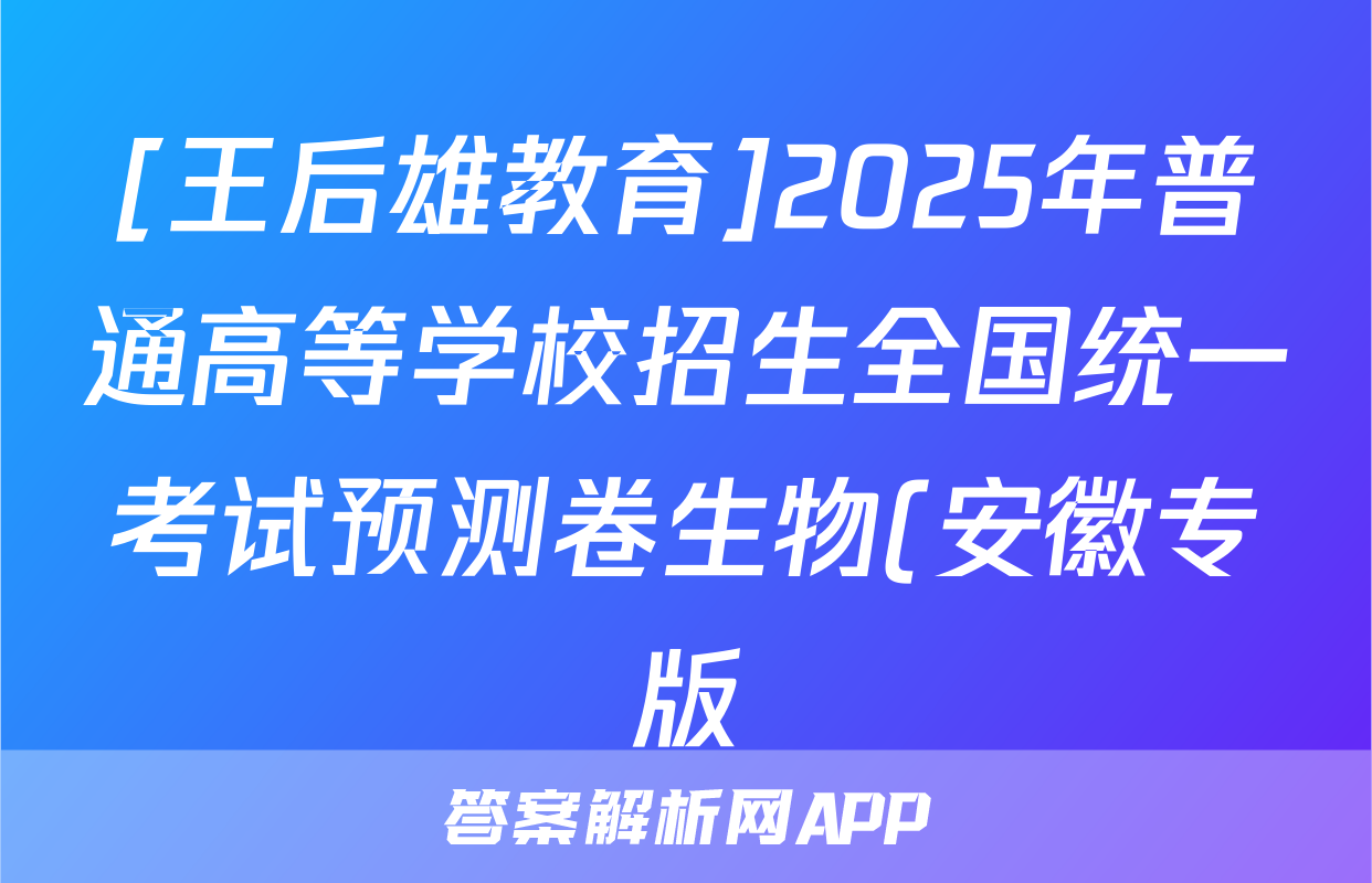 [王后雄教育]2025年普通高等学校招生全国统一考试预测卷生物(安徽专版)试题正在持续更新,目前2026卷行天下答案网为大家整理了相关试题及答案,供大家查缺补漏,高效提升成绩。