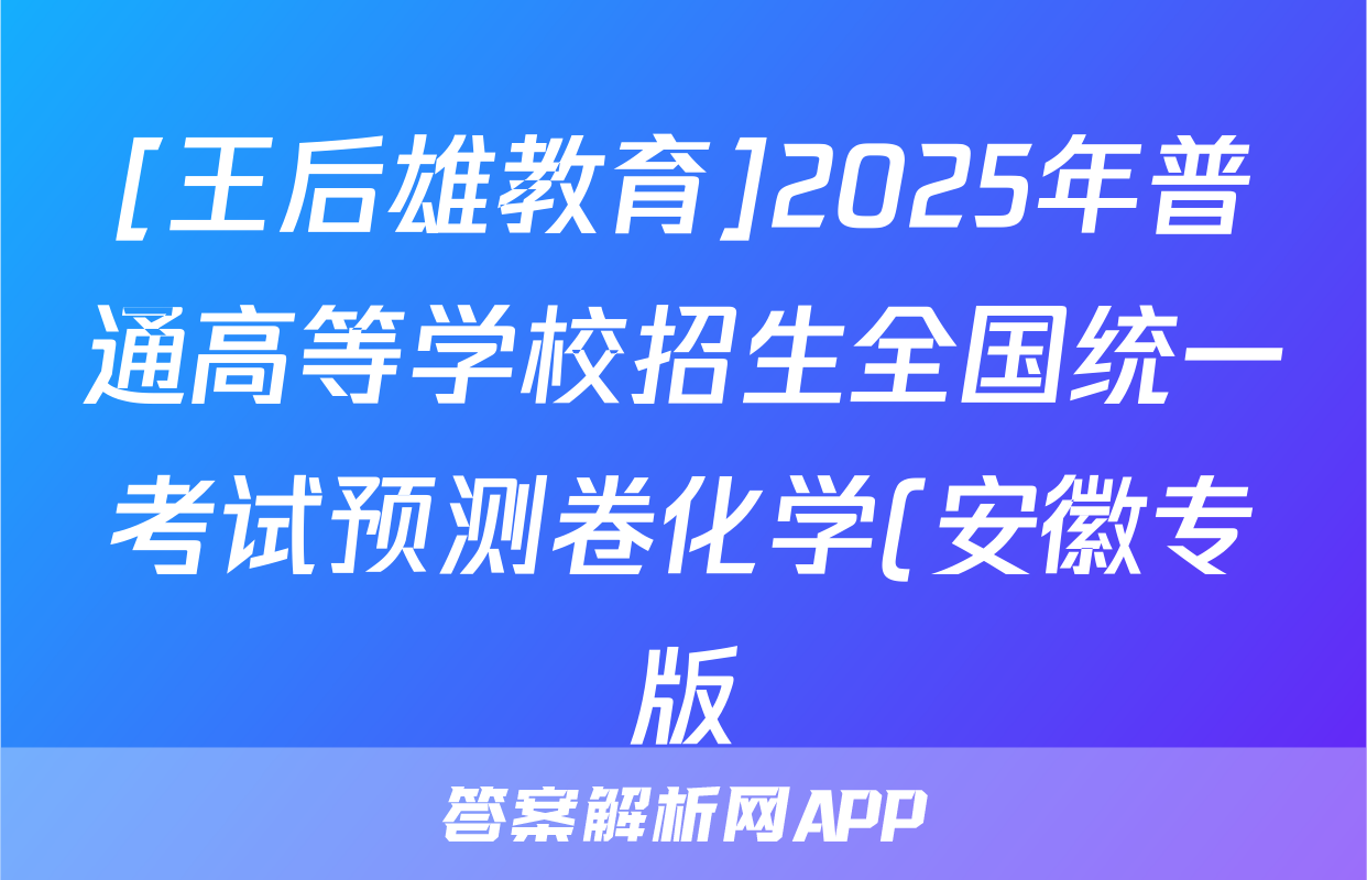 [王后雄教育]2025年普通高等学校招生全国统一考试预测卷化学(安徽专版)答案正在持续更新,目前2026卷行天下答案网为大家整理了相关试题及答案,供大家查缺补漏,高效提升成绩。