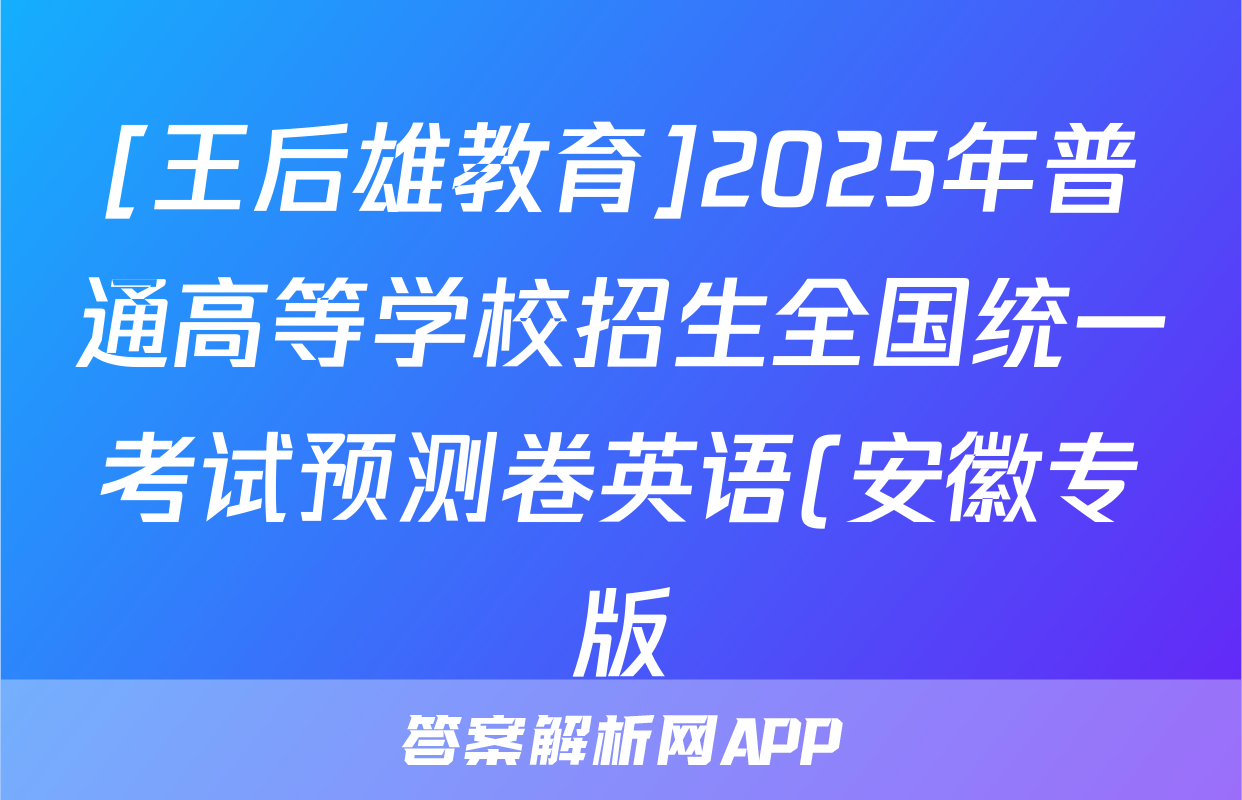 [王后雄教育]2025年普通高等学校招生全国统一考试预测卷英语(安徽专版)答案正在持续更新,目前2026卷行天下答案网为大家整理了相关试题及答案,供大家查缺补漏,高效提升成绩。