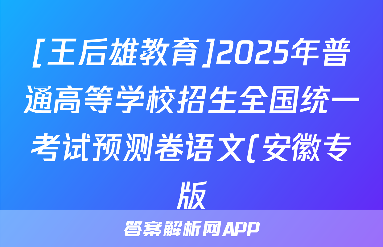 [王后雄教育]2025年普通高等学校招生全国统一考试预测卷语文(安徽专版)答案正在持续更新,目前2026卷行天下答案网为大家整理了相关试题及答案,供大家查缺补漏,高效提升成绩。