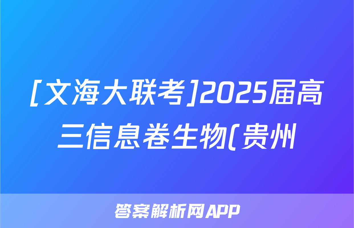 [文海大联考]2025届高三信息卷生物(贵州)试题正在持续更新,目前2026卷行天下答案网为大家整理了相关试题及答案,供大家查缺补漏,高效提升成绩。