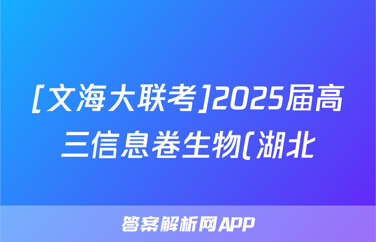 [文海大联考]2025届高三信息卷生物(湖北)试题正在持续更新,目前2026卷行天下答案网为大家整理了相关试题及答案,供大家查缺补漏,高效提升成绩。