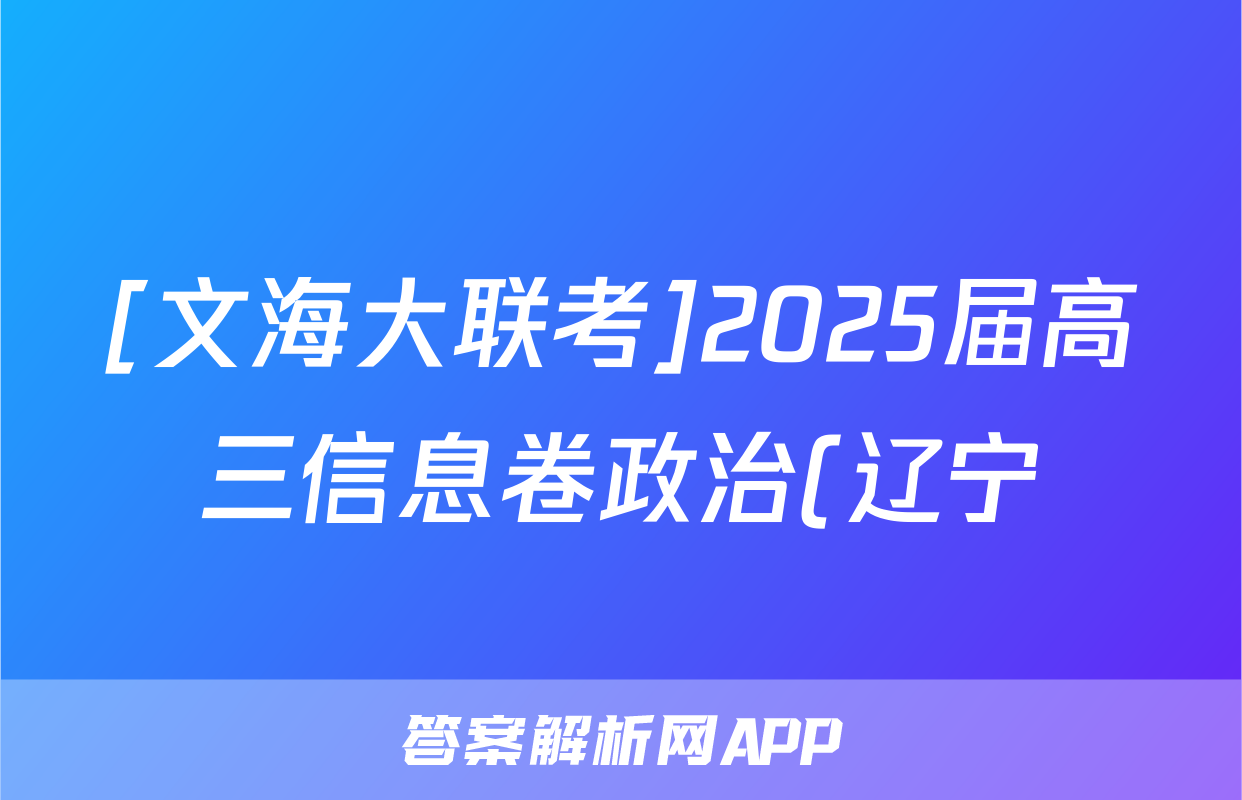 [文海大联考]2025届高三信息卷政治(辽宁)答案正在持续更新,目前2026卷行天下答案网为大家整理了相关试题及答案,供大家查缺补漏,高效提升成绩。