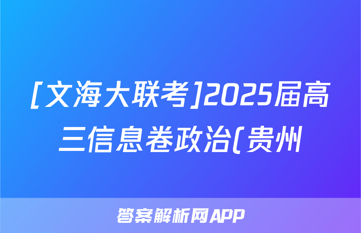 [文海大联考]2025届高三信息卷政治(贵州)答案正在持续更新,目前2026卷行天下答案网为大家整理了相关试题及答案,供大家查缺补漏,高效提升成绩。