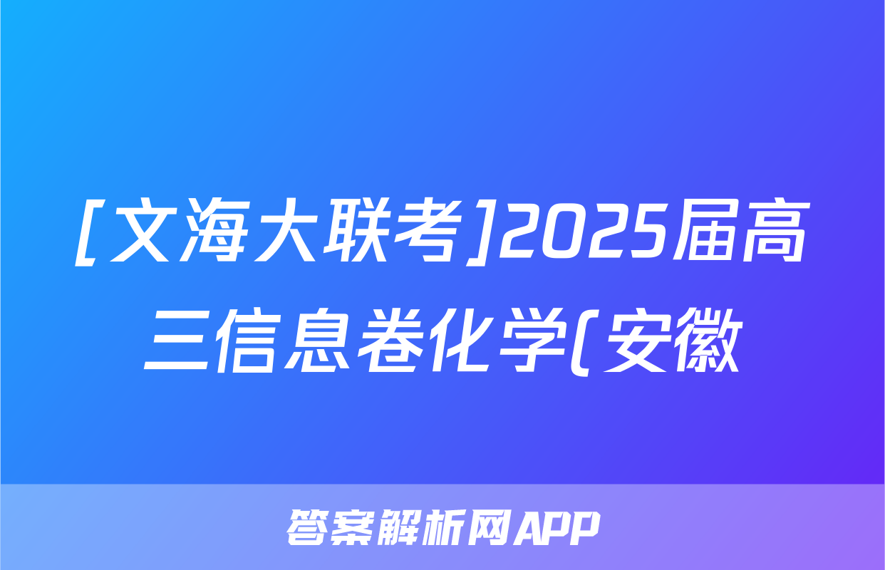 [文海大联考]2025届高三信息卷化学(安徽)答案正在持续更新,目前2026卷行天下答案网为大家整理了相关试题及答案,供大家查缺补漏,高效提升成绩。