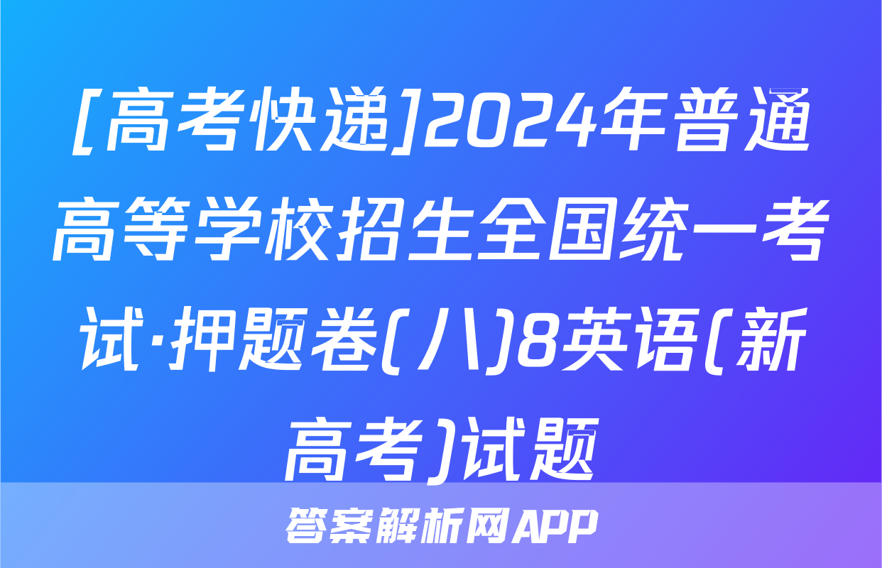 <p>1、[高考快递]2024年普通高等学校招生全国统一考试·押题卷(八)8英语(新高考)答案</p><br><p><p>1、高考快递 2024年普通高等学校招生全国统一考试·信息卷(八)8...